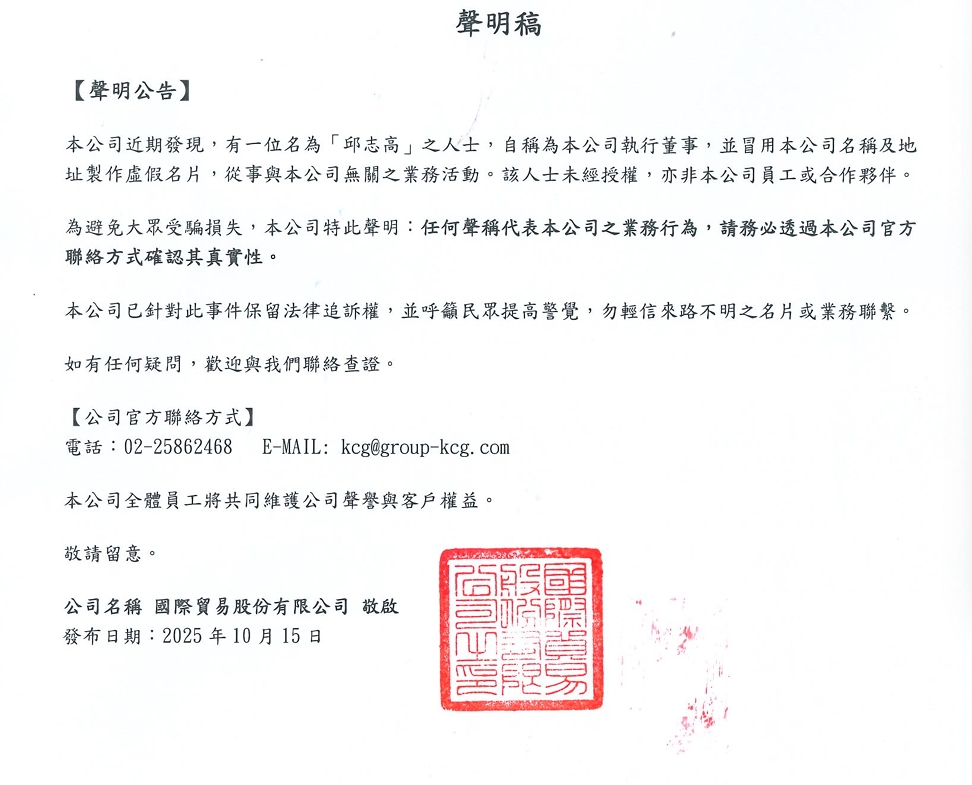 > 【聲明】本公司名稱遭不法冒用製作名片,特此澄清